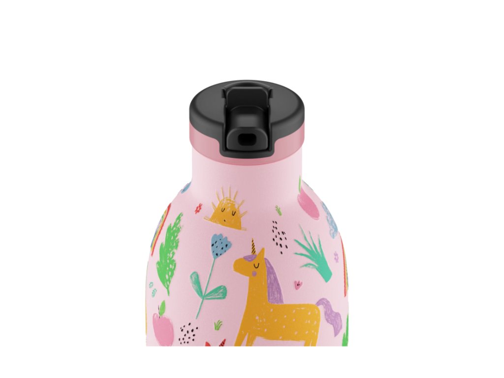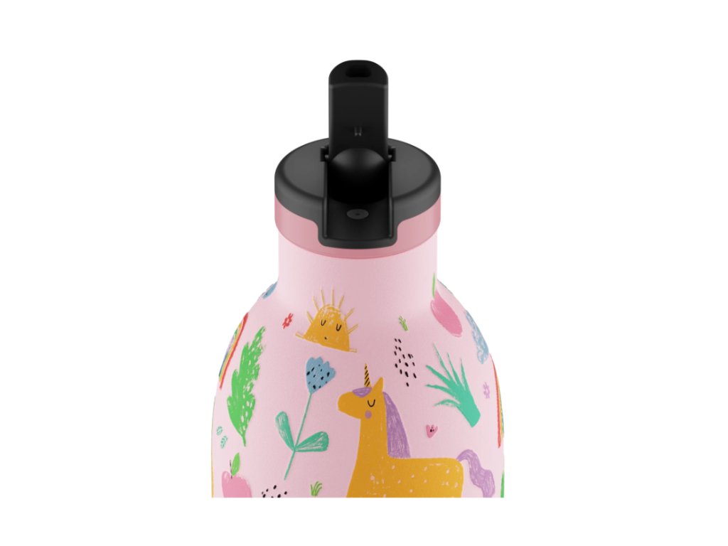 Detská fľaša opakovane použiteľná na vodu so sosákom a odoberateľnou slamkou. Je určená pre ručičky tých najmenších, aby ľahko a sami pili vodu doma, v škole alebo na ihrisku.